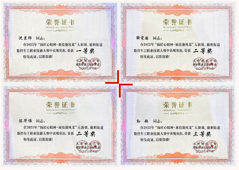 2023年大新鎮(zhèn)消防職業(yè)技能大賽暨首屆“新工匠領(lǐng)”頒獎(jiǎng)典禮圓滿落幕,在“揚(yáng)匠心精神,展技能風(fēng)采”數(shù)控車工職業(yè)技能大賽中獲獎(jiǎng)的多位金鷹員工參與了此次頒獎(jiǎng)儀式。